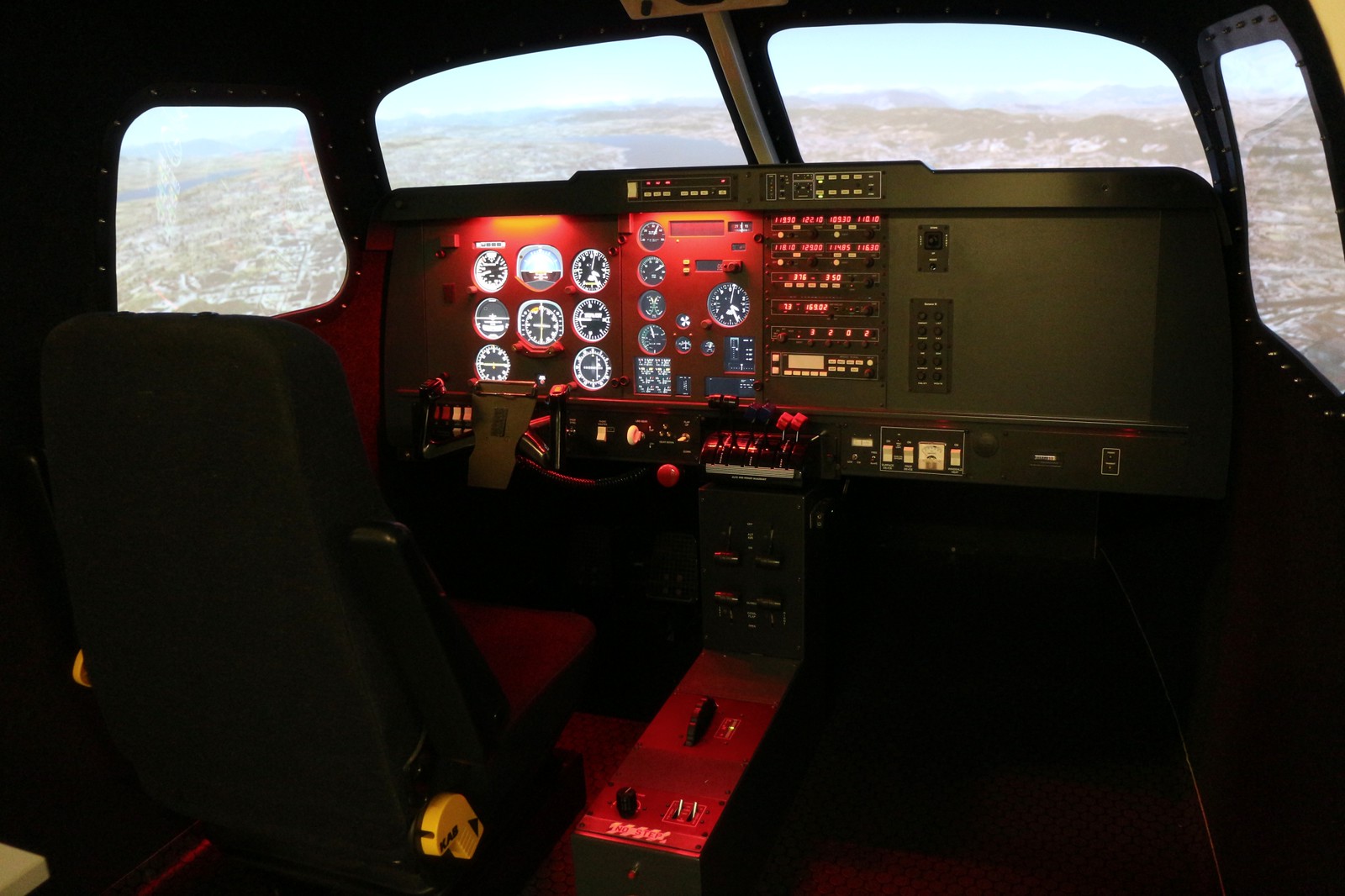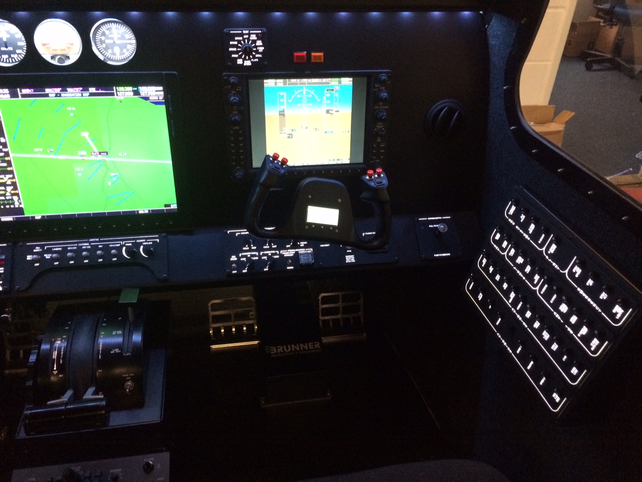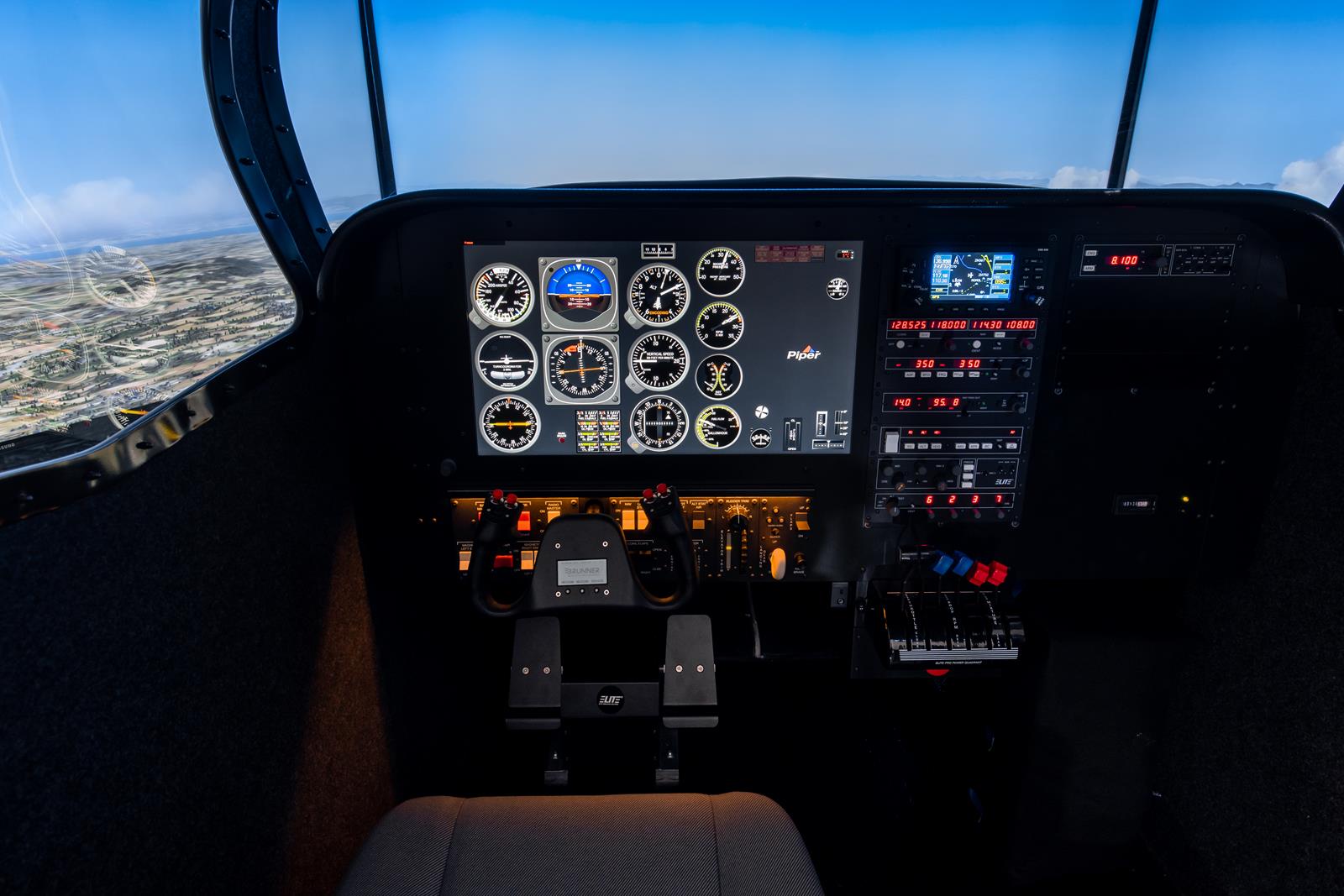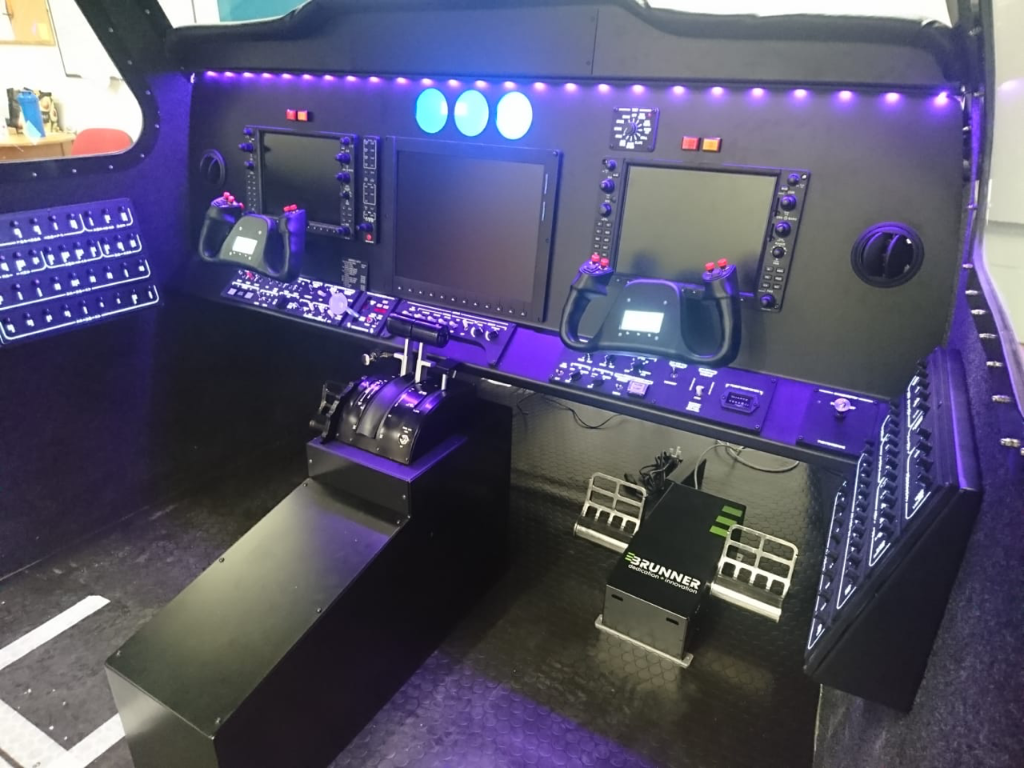 The simulator can be configured with interchangeable throttles, varying Avionics options.