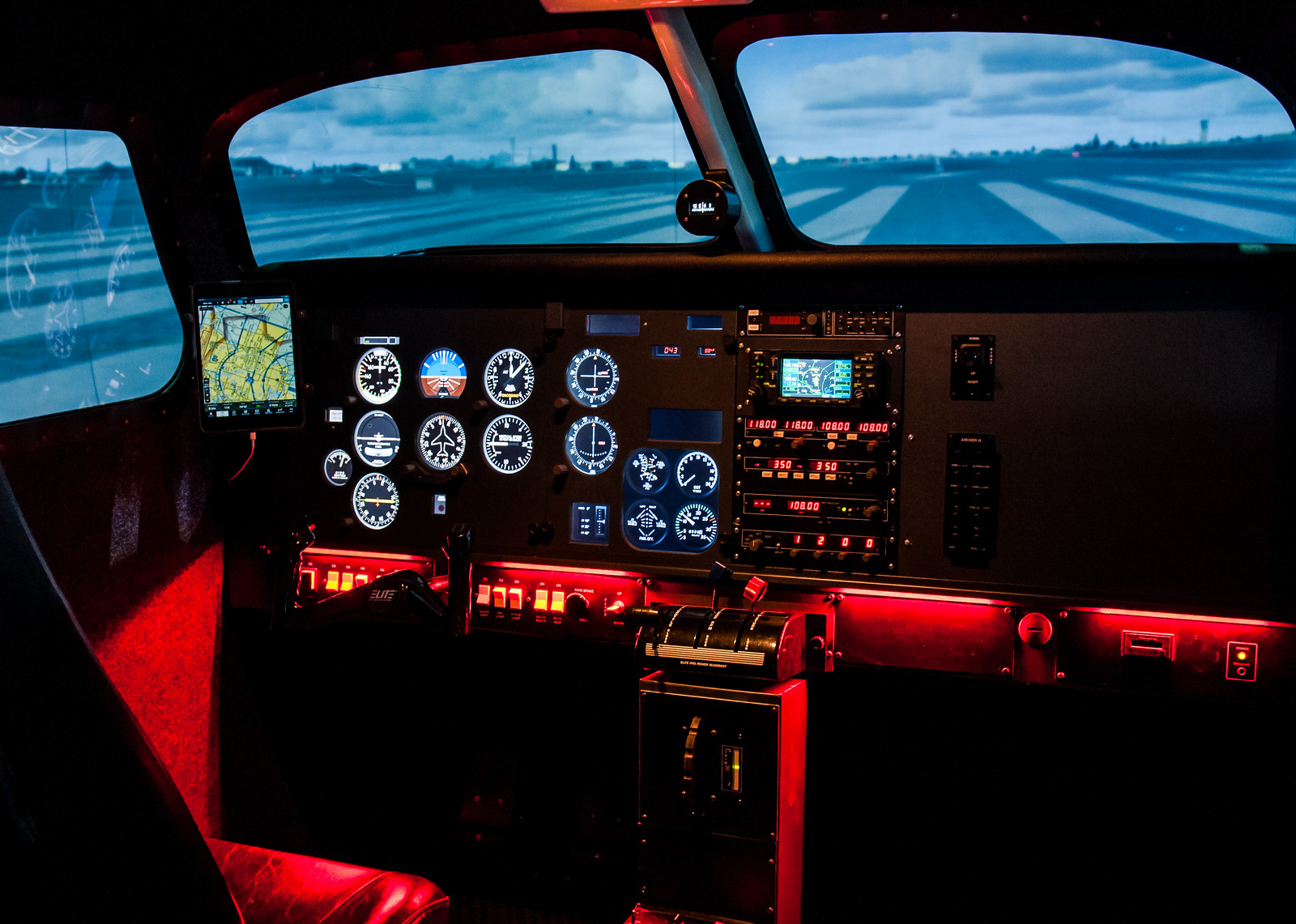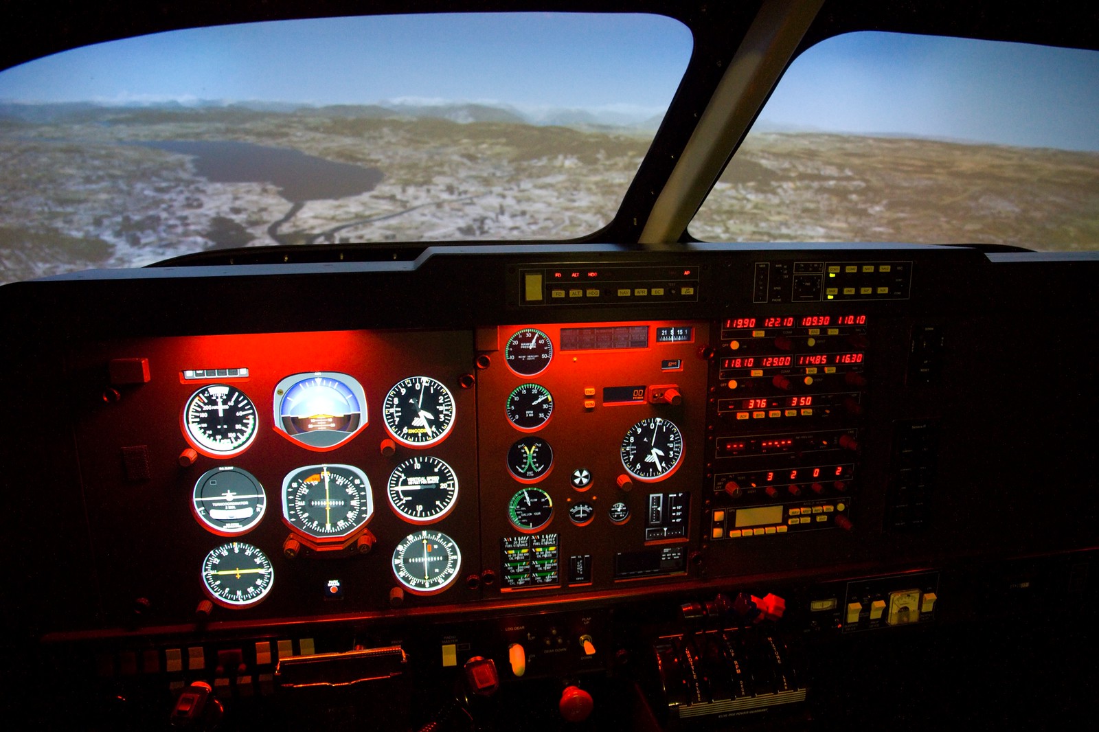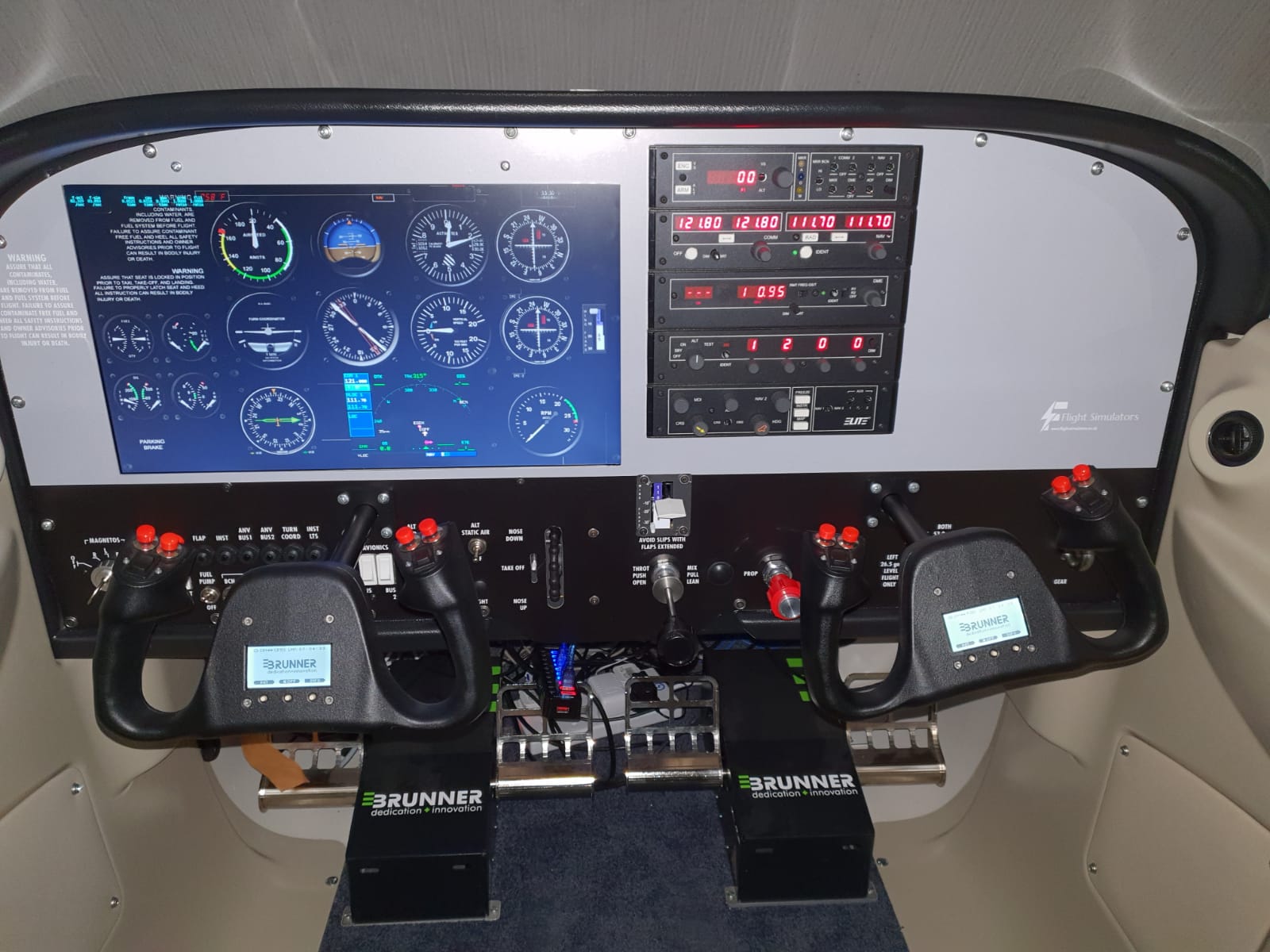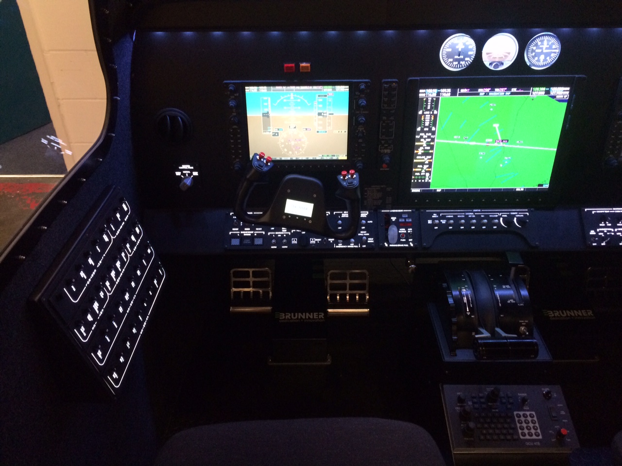 The simulator can be configured with interchangeable throttles, varying Avionics options.