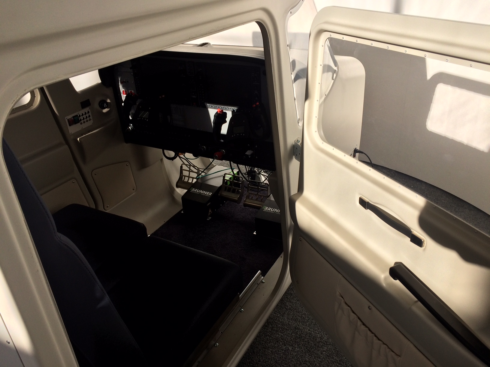 Fibreglass Cockpit, Control Loading Yoke & Pedals, Leather Seat, Digital Avionics, Optional Aircraft Type Instrument Masks.