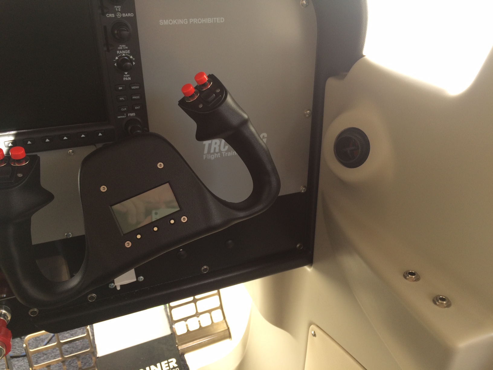 Adaptations available for Cirrus (sidestick), Diamond (entre stick), Standard Yoke, Control Loading Controls, Helicopters (Cyclic & Collective)