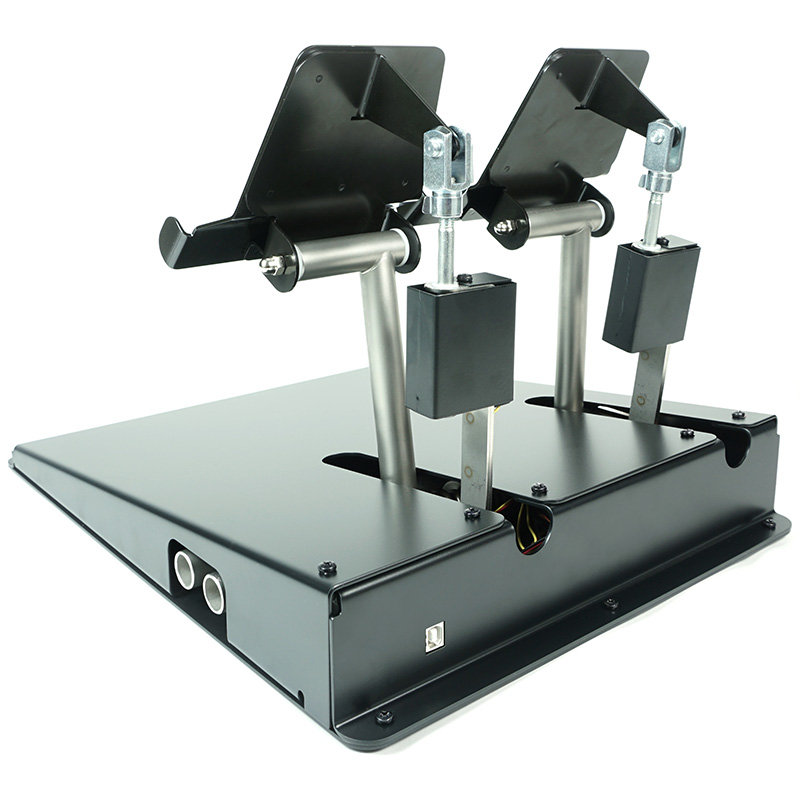 Due to the special design, the TRC Rudder Pedals can be easily interconnected together at any time to create a dual rudder control system, by simply adding the low cost Rudder Coupler (EUR 78.00). When you'd like to create a dual rudder control, just order another set of Rudder Pedals and the Rudder Coupler. There is no need to use an additional USB port or an additional CCU connection for the dual rudder system. The additional rudder set only connects the two rudder systems mechanically together.
